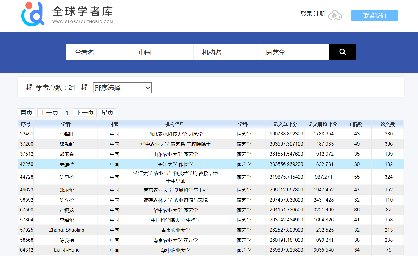 近日,国内全球学者库网站(http://www.globalauthorid.com/)公布了“全球顶尖前10万科学家排名”。350vip浦京集团350vip浦京集团吴强盛教授以论文总评分333556.9692、论文篇均评分1832.731、论文数182、H指数30,入选该项排名,位居全球42250名,在国际园艺学科排名第23位,国内园艺学科排名第4位。