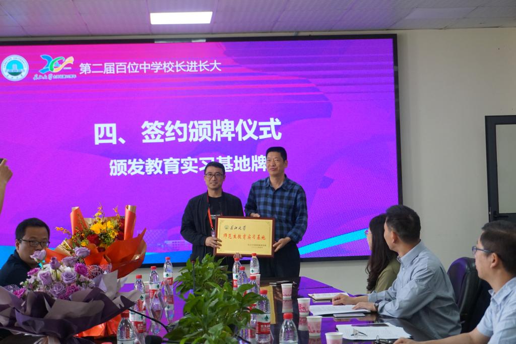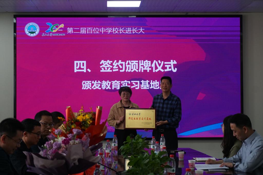 会议最后,学院党委书记为蕲春一中、武穴中学和武穴育才中学颁发教育实习基地牌,陪同高中校长一行参观了10.24英雄纪念馆、学院实验室以及欣赏了茶艺表演。