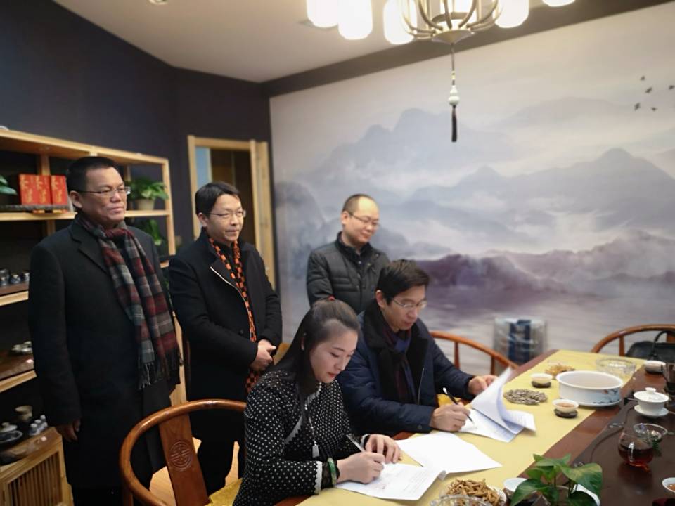 为了进一步做好350vip浦京集团2019届毕业生就业工作,了解用人单位人才需求,拓宽毕业生就业渠道,深化校企合作。2018年12月14日,学院分党委副书记文启华老师,茶学系系主任赵振军博士,学校就业指导中心胡迎春主任,学院学工办孙永强老师一行赴荆州市腾熙茶文化传播有限公司实地考察并洽谈毕业生就业实习基地建设和校企合作相关事宜,受到该公司总经理黄小年的热情接待,座谈会由黄小年主持。
