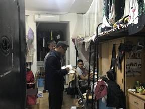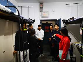 学院领导高度重视军运会期间学生安全稳定工作,学院党委副书记平先锋老师主持召开学工例会,对这一特殊时期的安全稳定工作做出详细部署。一是由学工办做好军运会期间的值班安排,每天有专职辅导员进行值班,并且接待学生的来访。二是学院党委书记丁兴禄老师、党委副书记平先锋老师带领全体辅导员分别在10月16日晚8点30分,10月23日晚9点30分深入学生寝室,与学生亲切交流,检查宿舍安全卫生,晚归和违规使用电器等情况,关心学生成长成才,切实解决学生实际困难。三是认真落实每周四下午的宿舍安全卫生大检查,年级辅导员带领学生干部,对宿舍饲养宠物、脏乱差、便池长年不洗、室内吸烟等状况严格督促打扫和整改。四是各班认真开展防范非法校园贷主题班会,引导学生形成理性,健康的消费观念。四是加强对重点学生的关心和支持,尤其是一级关注学生,新生心理普查后的重点学生,辅导员和班主任一对一,面对面开展谈心活动,力求时效。