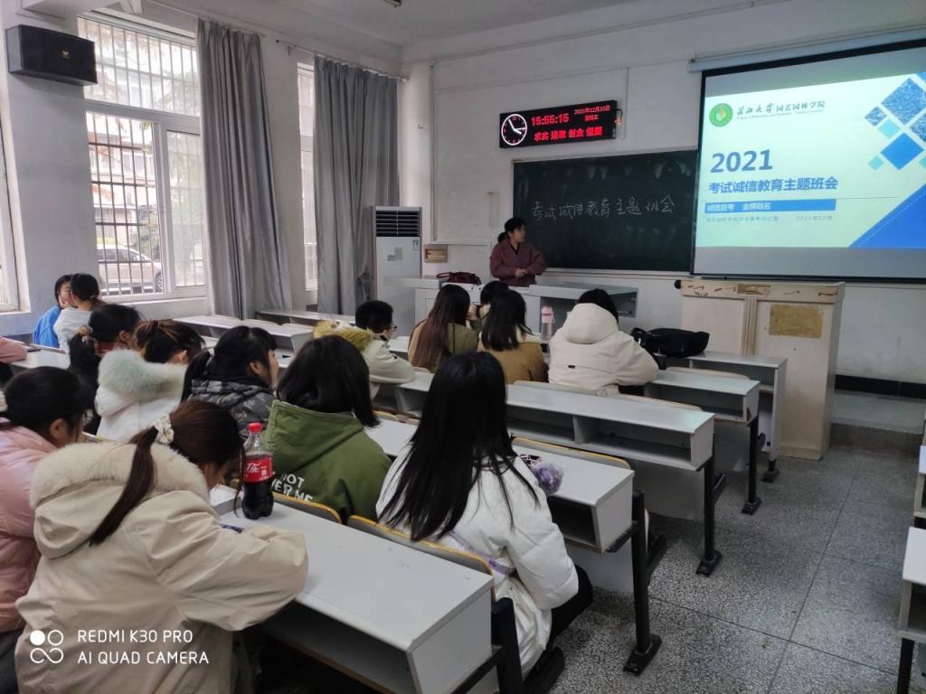 (通讯员:刘冬杰)根据《关于加强期末系列考试考风考纪教育及疫情防控工作的通知》,为做好全国大学生英语四六级考试、全国研究生入学考试和期末考试相关工作,根据教育部、省教育考试院和学校相关通知精神,350vip浦京集团于2021年12月6日-16日开展了诚信考试主题教育班会。诚信为人之本,警示各位同学应诚信考试。