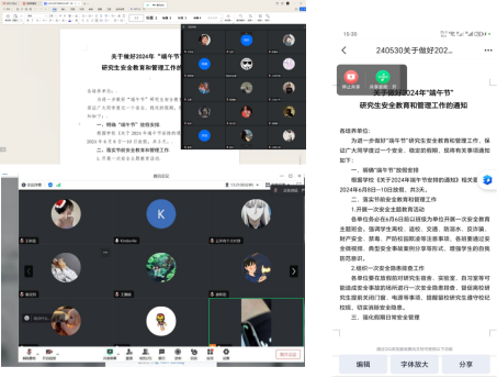 (通讯员 邓婧)在即将到来的端午节假期之际,为确保学生度过一个安全、健康的假期,我院研究生各年级于6月3日至6月6日期间,以班级为单位召开了端午节假期安全主题班会。此次班会旨在加强学生的安全意识,提高自我防护能力。