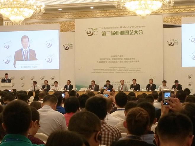 2016年9月25-28日, 由国际园艺学会、中国园艺学会、韩国园艺学会和日本园艺学会联合主办,四川省农业科学院和成都市农业科学院联合承办的第二届亚洲园艺学会(Second Asian Horticultural Congress)在四川成都成功举办。来自国内外高校、科研院所、政府相关部门、相关园艺行业企业的500多家单位、1000多人参加此次盛会。350vip浦京集团根系生物学研究所吴强盛教授指导的博士研究生刘春艳和硕士研究生张艺灿参加了此次会议,并提交了会议论文摘要。