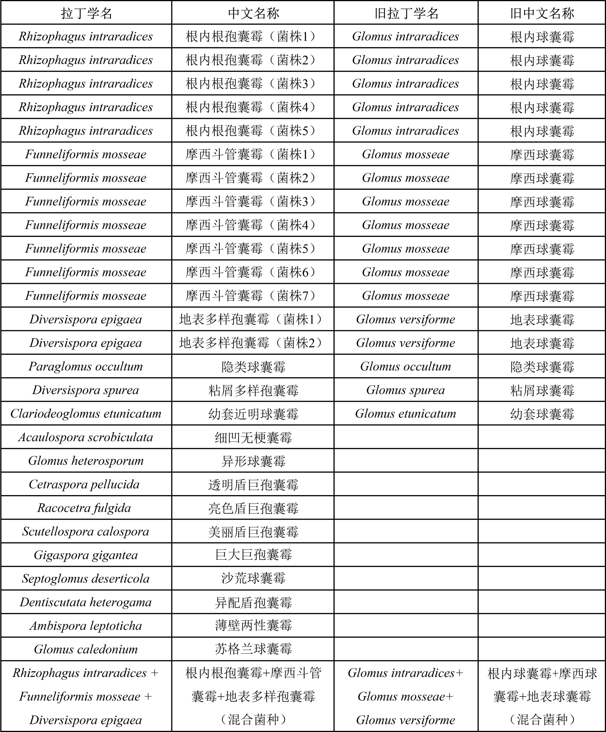 每份AM真菌剂量为400 g干燥全培养物,包括基质菌丝、孢子、真菌侵染的根段以及培养基质。